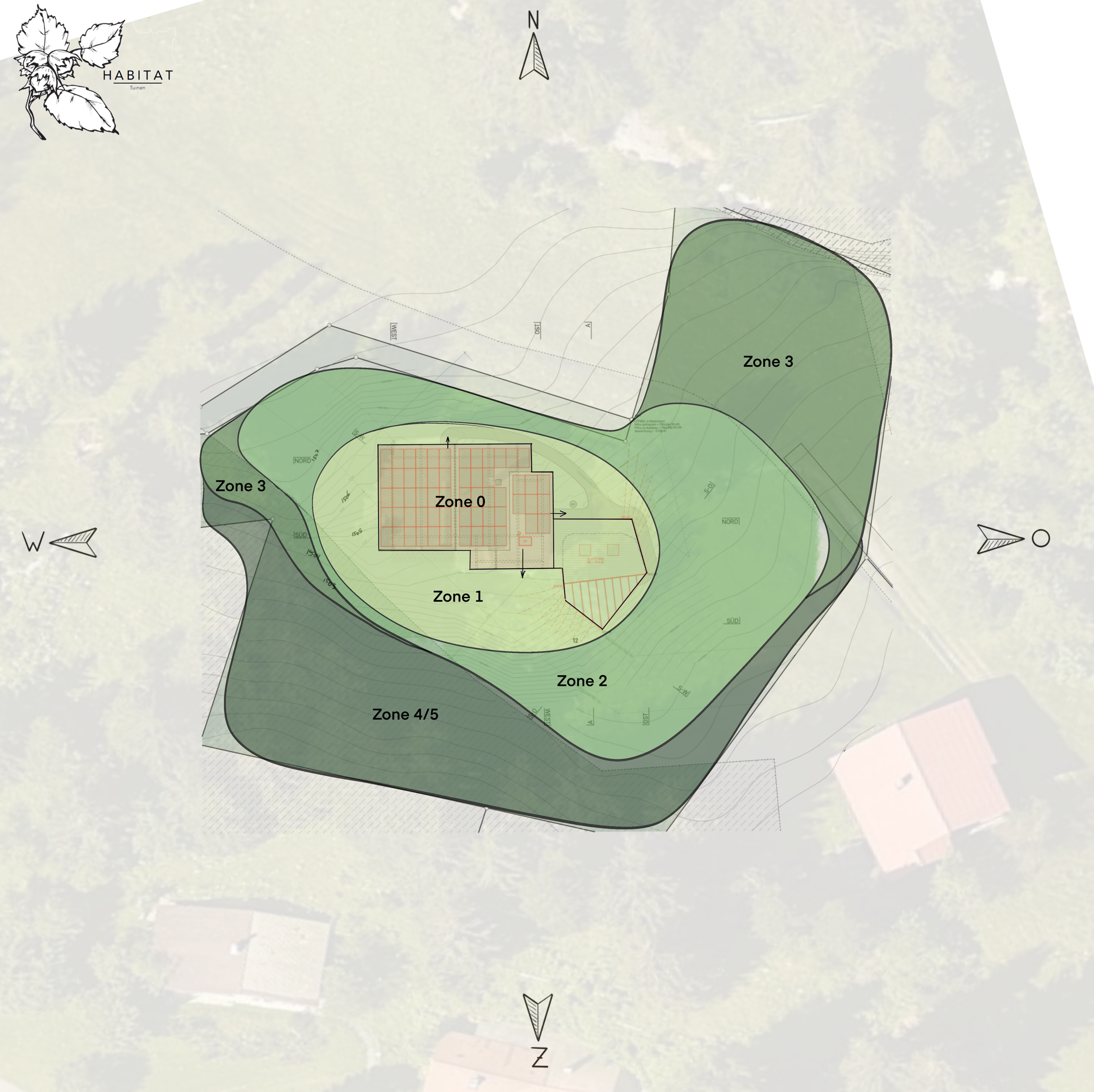 Zone 4/5: Dit zijn de minst bewerkte gebieden. Deze delen hebben weinig tot geen onderhoud nodig en bieden ruimte voor de natuur om een beetje zijn gang te kunnen gaan.